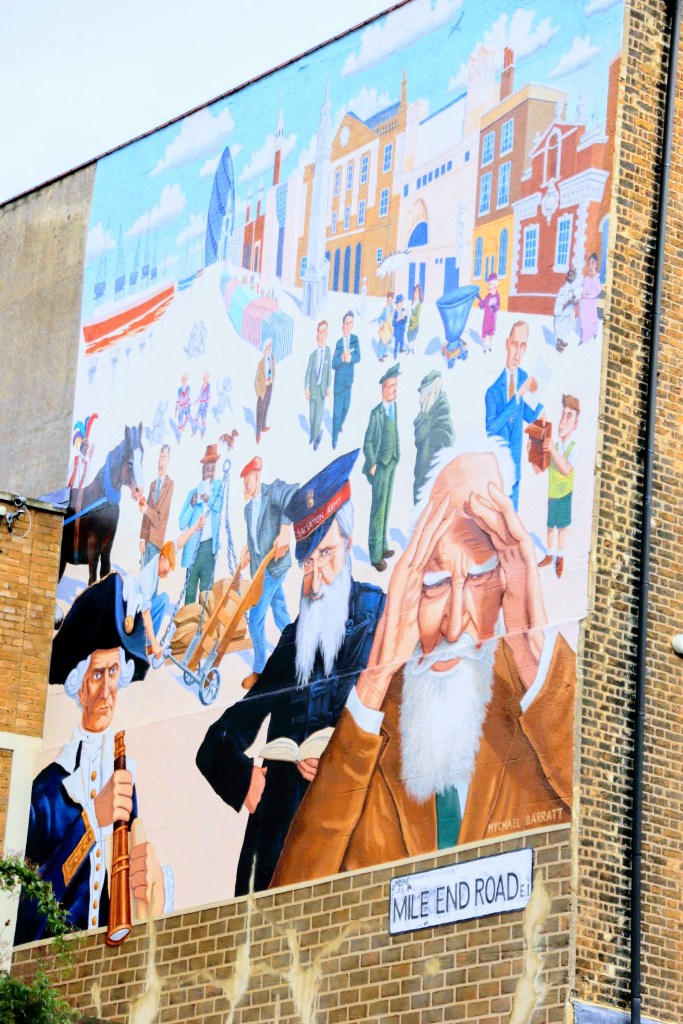 The area is an eclectic and diverse one which merges many cultures and industries and offers a wealth of history, colour and architecture. Here’s my view which takes me into Whitechapel, Spitalfields, Shadwell and down towards the river at Wapping. It’s hard to discern where the boundaries for these areas lie, although I’ve no doubt there’s a map somewhere depicting them. That really isn’t important, but what is interesting and exciting is that wandering as I do, I’m always amazed at some of the sights I see that are either hidden or forgotten. Hidden in the streets are murals and buildings with architectural significance in full sight of everyone, but no one sees them. And forgotten in the sense that their importance, and/or value, are no longer considered relevant. I’ll try and rekindle some of them here.