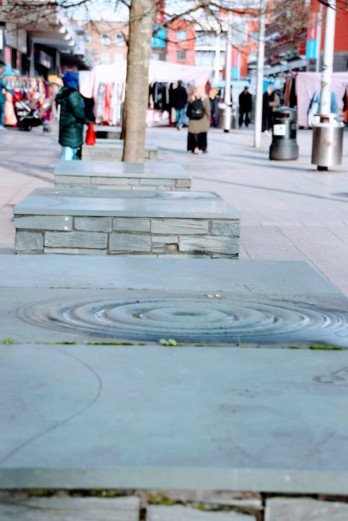 Heading south from Whitechapel HIgh Street, I meander through Shadwell, and stumble upon Watney Street Market; one of many localised markets throughout the borough of Tower Hamlets. The market offers a cut through from the main A13 Commercial Road to Shadwell Overground station, and it’s a busy market day offering a glimpse of the borough’s diverse range of residents. At the southern end of the market there’s a collection of large flat slabs set in a straight line upon which I’m invited to sit on. And as I do, I see there’s a historical theme engraved on them, with references to the area’s shady past. If anyone has any knowledge of these slabs, please drop me a line.