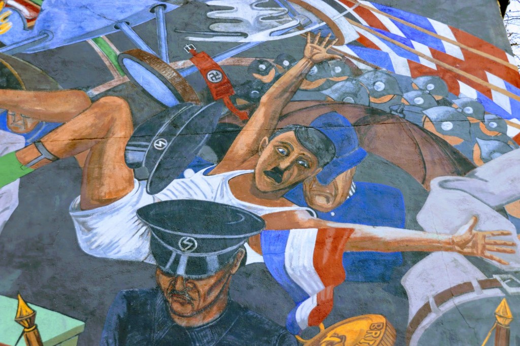 Onward into Cable Street, the street’s name states simply what its purpose was; that of a straight path along which hemp ropes were twisted into ships’ cables. I have some familiarity with such a place name as in my home town of Aberystwyth, I lived near ‘Rope Walk’ which has a similar historical origin. Walking along to the entrance to St George’s Gardens and I find I’m immersed, through a very large mural, in the story of the Battle of Cable Street. 4th October 1936 saw a hand to hand battle between the fascist supporters of Oswald Mosley and local residents and the Metropolitan Police. Go take a look, as both the mural and the story are well worth seeing and reading about.