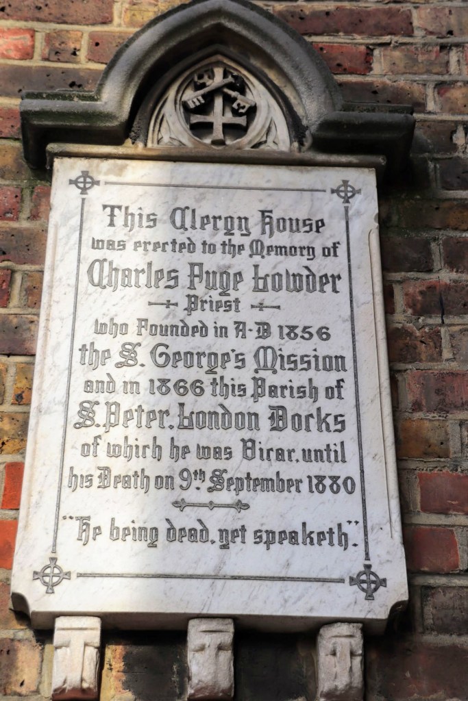 Further down Wapping Lane, I pass St Peter’s London Docklands Church, and admire its gaunt frontage which was built as a memorial to its founder, Father Lowder.
