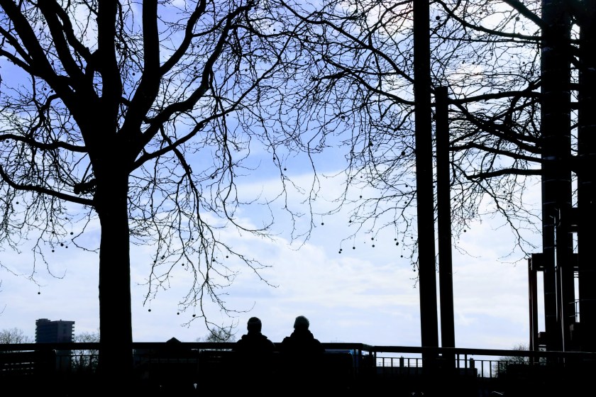 Wapping is the home for the Metropolitan Police Marine Unit and Boatyard, and I spot a couple resting their feet in Waterside Gardens, which sits in between the two buildings. They seem to be enjoying the riverside view of working and pleasure boats moving up and down stream.