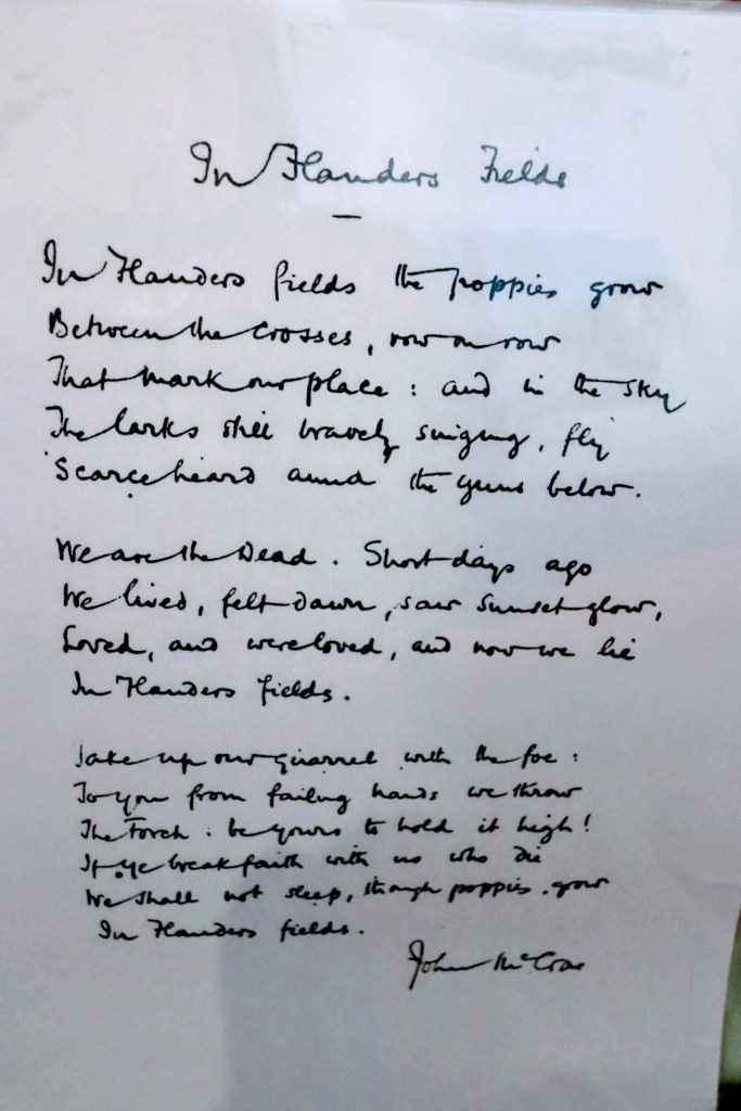 And whilst walking around the first floor, there’s a haunting rendition of early 20th Century music being played to complement the exhibits of the two World Wars. I’m moved by this copy of a handwritten poem by Lieutenant Colonel John McCrae, MD – ‘In Flanders Fields’