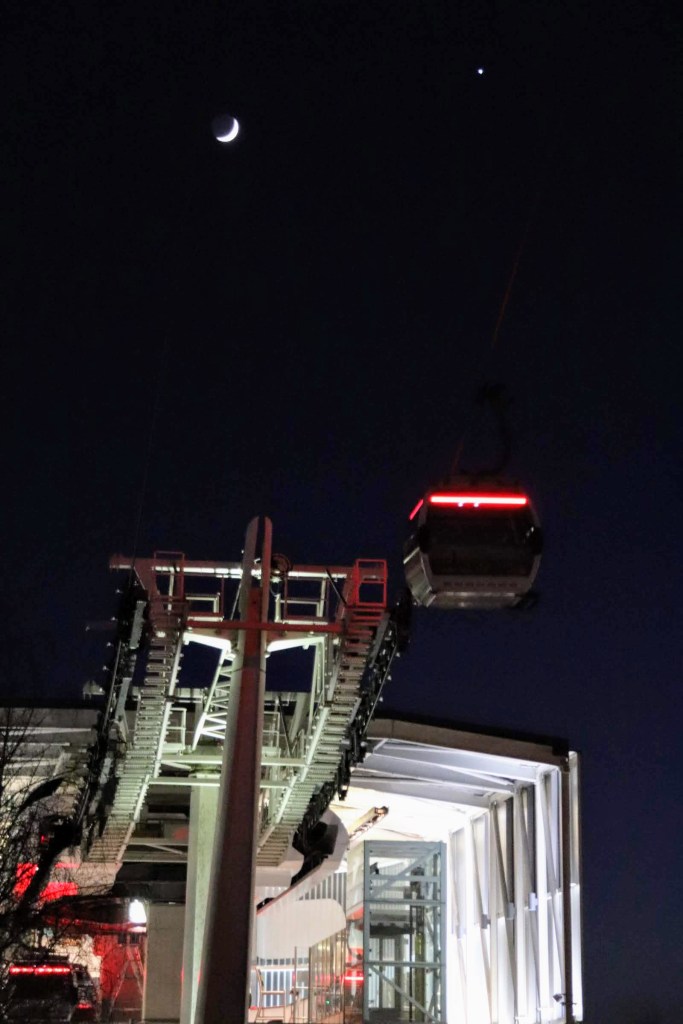 This night time shot of the North Greenwich station is quite striking as the Moon and the planet Venus shine brightly against the cloudfree sky.