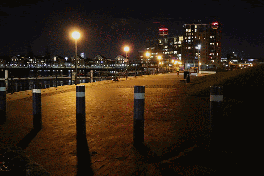 The route I take is a fairly simple one: twice around the westerly part of the docks from The Emirates Royal Docks station in an anti-clockwise direction over the Royal Victoria Bridge and back. Once in the daylight and once at night time.