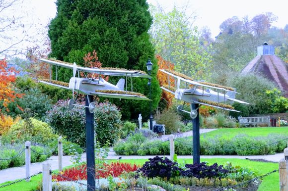This one, I believe, epitomises the scale, grandeur and colour of the town’s display with the large scale bi-plane models elevated in formation showing off a combination of design and gardening skills. Despite it being a drizzly day, which dampens the garden’s colour palette, there’s a hint of sunlight peeking through the low cloud base helping to lift the greenery.