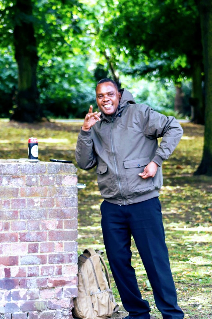 As I’m walking out of Barking Park, I’m beckoned by Hubbard to take his picture whilst he’s standing under the trees enjoying a can of Guinness and chatting on his mobile. Always happy to oblige a willing volunteer, I approach and it seems we end up having a three way conversation. I’ve no idea who is on the other end of the line, but I do note that Hubbard has probably enjoyed a number of drinks by the time I see him.