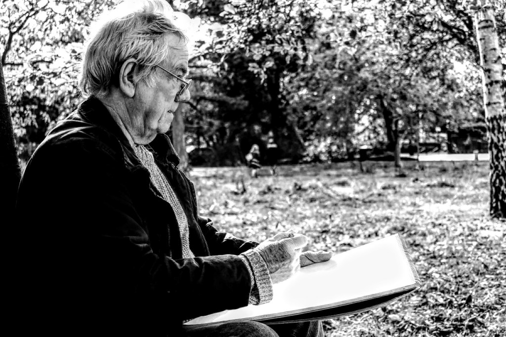 At one moment, the sun peered through the tree canopy creating a halo effect above him, which works well with the concentration on his face. Thi black and white image bring out the skin tones and detail to its best.