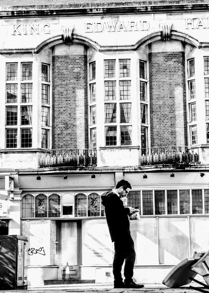 This is outside King Edward Hall, a prominent Grade II listed building built in 1911-12 as a private banqueting hall on the upper floors, shops on the ground floor, and used as a temporary hospital during WWI. Somewhat dilapidated although its restoration is being considered.