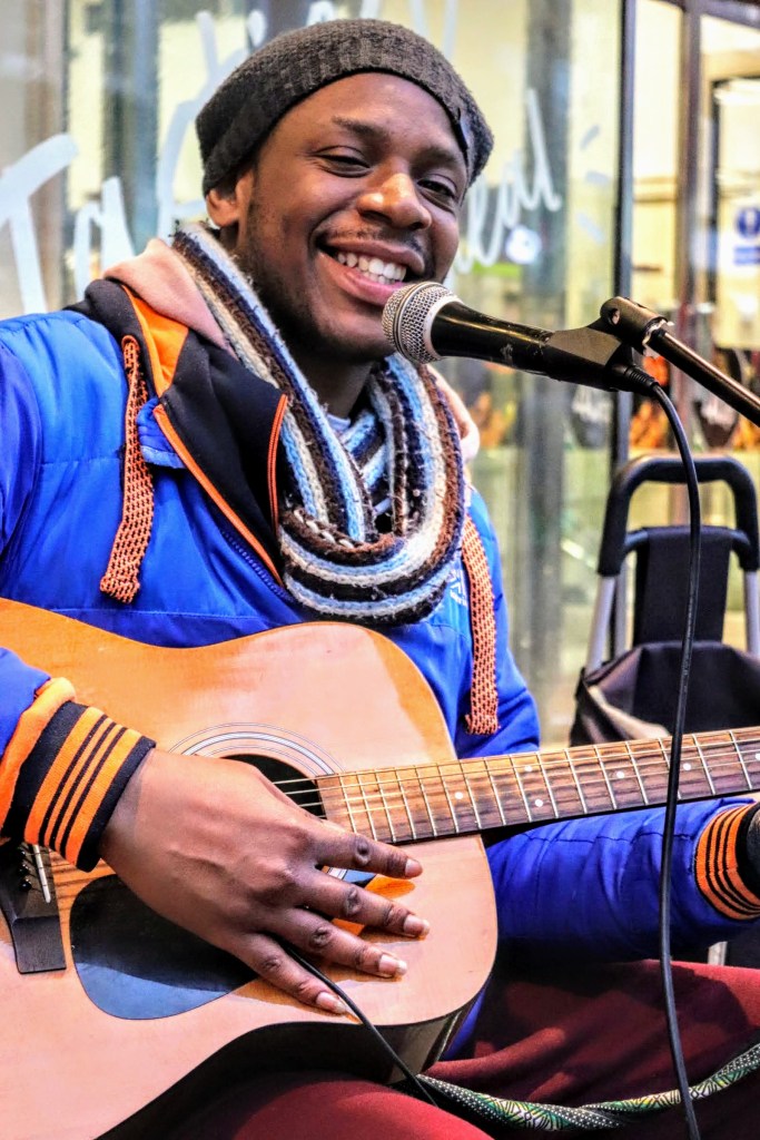 Joseph was sitting outside M&S happily singing and strumming his guitar. As I’d heard him earlier in the day, I decided to stop and chat.