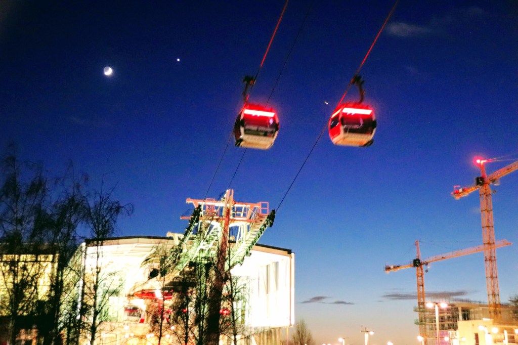 It was a bitterly cold night with a beautiful clear sky and the motorised regularity of the empty gondolas flying above gave off a droning hummmmmmm oblivious to their celestial neighbours.