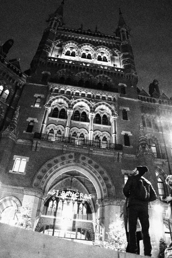 This moment captures two admirers looking up at the building. Maybe they’re looking for somewhere to stay, or more likely taking in the building’s magnificence, attractively lit that adds character to an already characterful setting