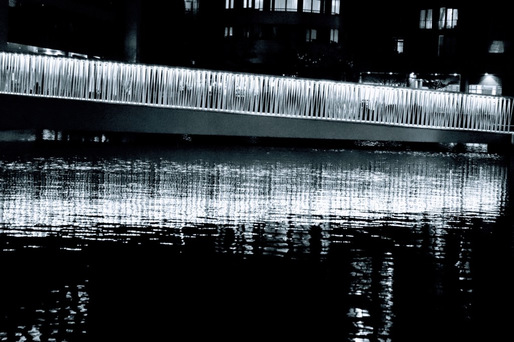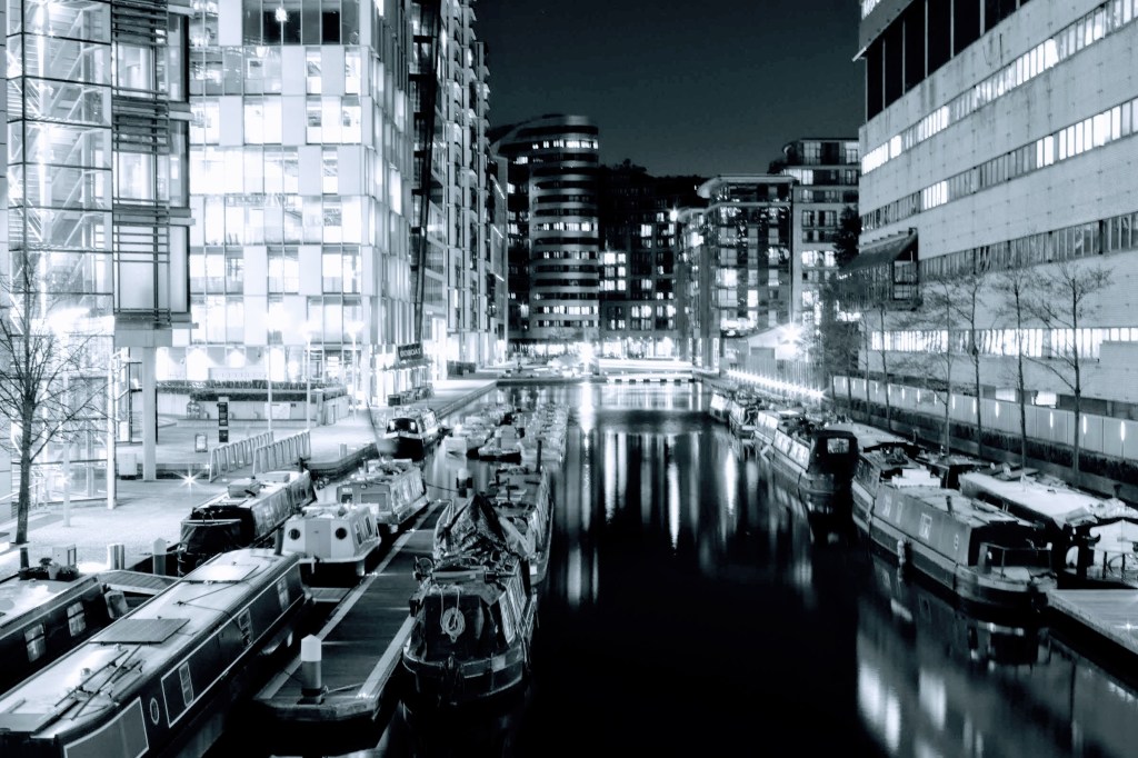 The barges all moored up for the night, and offices awash with wasted electricity. Whilst the lights do cast an attractive reflection across the still water, building managers really do need to think differently about the impact they have on our planet.