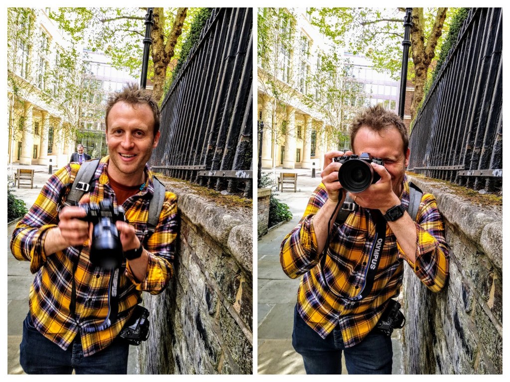 Why am I sharing this? Because he chose me as his random person on this day, and this is the shot he took which he has kindly allowed me to use for my own publicity. Thank you, John. It would have been rude not to reciprocate, and this montage shows the photographer at work and the smile behind the lens.