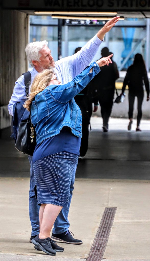 Is it a bird? – As I was leaving the station, along the footbridge across York Road, to the northwest of the station, I looked back and saw this couple. I’ve no idea what they were looking at as their gesture is very much skyward. But whatever it was, it kept their attention for a little while; long enough anyway for me to capture a few shots.