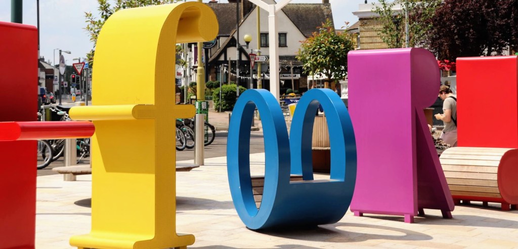 These large freestanding letters spelling out ‘WATFORD’ serve as seating areas and encourage visitors’ photos and related social media posts designed to raise the town’s profile in a positive and obvious way.