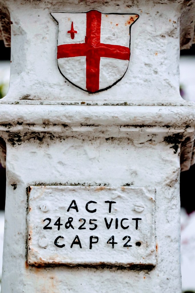 Coal Tax – I’d never come across this historical reference before, not until I paused in the side street that runs from the High Street to Exchange Road where there are two bollards with slightly different inscriptions, but both bearing 24 VICT.
