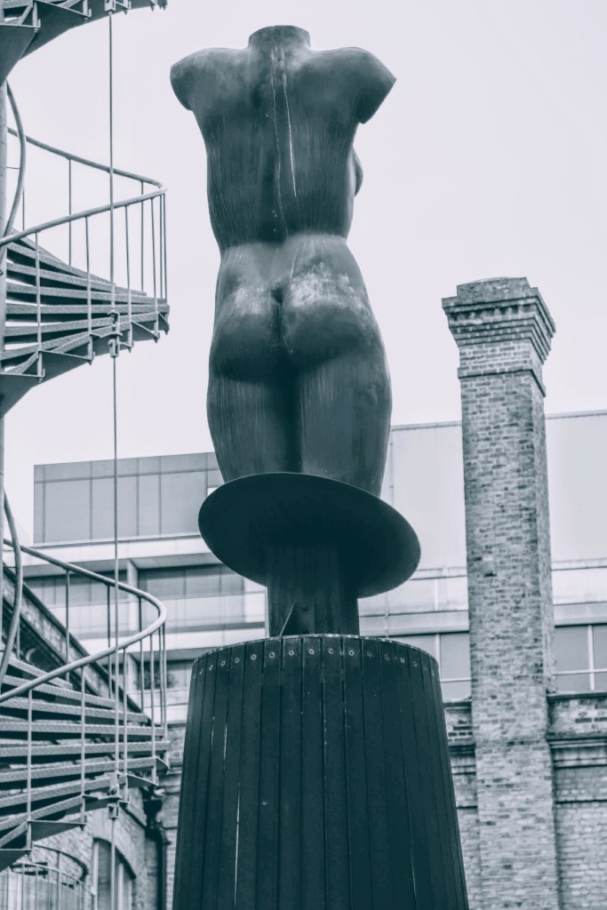 I discover two sculptures within the courtyards by the British artist and sculptor Antony Donaldson. Known for his work associated with the Pop Art movement, his two sculptures, Torso and Waterfall, are for all to see.