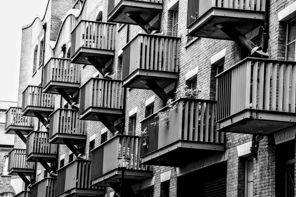 The walk towards London Bridge Road has Potters Fields Park on the left-hand side. If you walk through here, you’ll quickly reach the Thames, but instead, I head on across the main road into a quieter part of Bermondsey, exploring the streets leading down to Shad Thames. Three Oak Lane runs from Tooley Street to Queen Elizabeth Street, where it emerges opposite the Flag Store. Once the home of flag and tent manufacturer Benjamin Edgington, it is now fashionable offices and apartments. The street itself is a pretty unassuming residential area of mid-rise apartments, but I saw the symmetry in these balconies, which I felt warranted my time to capture.