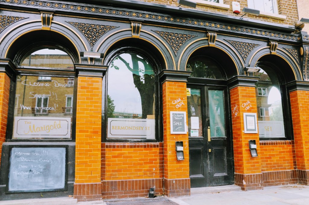 I head back to London Bridge along Bermondsey Street and soon pass an often too common sight these days, a pub that’s recently closed. Whether its closure is due to the impact of covid restrictions is uncertain, but the demise of The Marigold on the corner with Cluny Place must be a blow to the local community.