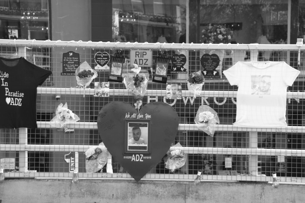 As I head back east, I stop and pause on the bridge and spare a thought for Adam Coulson and his Family. A hit and run driver tragically killed Adam in 2017, and his memory lives on through a shrine on the bridge.