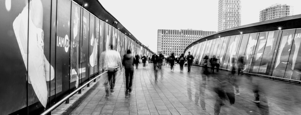 This long exposure shot aims to blur the shoppers and commuters making their way across the bridge, emulating a busy location. No one loiters or dawdles because if they did, they’d get washed away with the crowds of people walking along.
