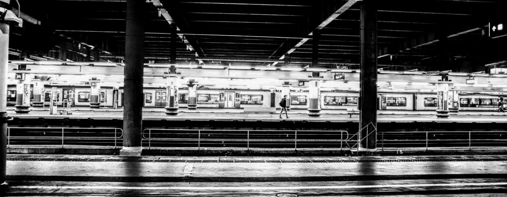 Here’s one view of the cavernous platforms at the station. I’m looking across from platform 18 to platform 14, where a Northwestern Railway train is ready to depart.