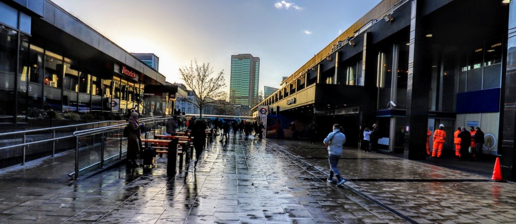 BT Tower is one of London’s most recognised and iconic landmarks. The BT Tower, originally the Post Office Tower, is precisely one kilometre from where I stood at the end of platform 1. The gloomy afternoon sky provides a blank canvas against which to showcase the coloured logo at the top of the tower.