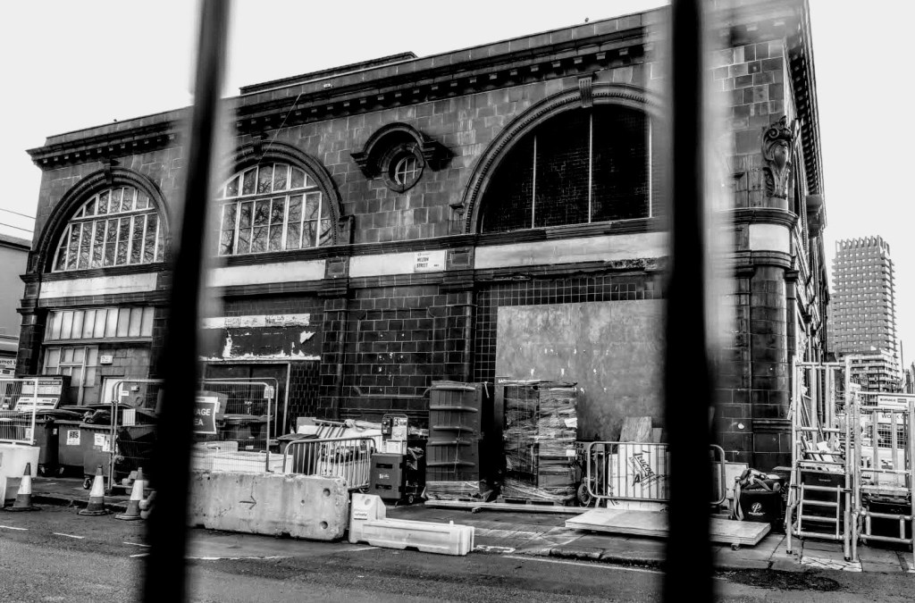I’ve filtered this shot to accentuate the structure’s grittiness and visually abandoned state. The roofline carries the old Red Star Parcel logo out of shot and to the station’s east. Red Star Parcels, owned by British Rail, provided station-to-station parcel delivery in 1963 as an experiment in competition with the General Post Office’s parcel delivery service. The service was acquired by Lynx Express in 1999 and later by UPS in 2005.