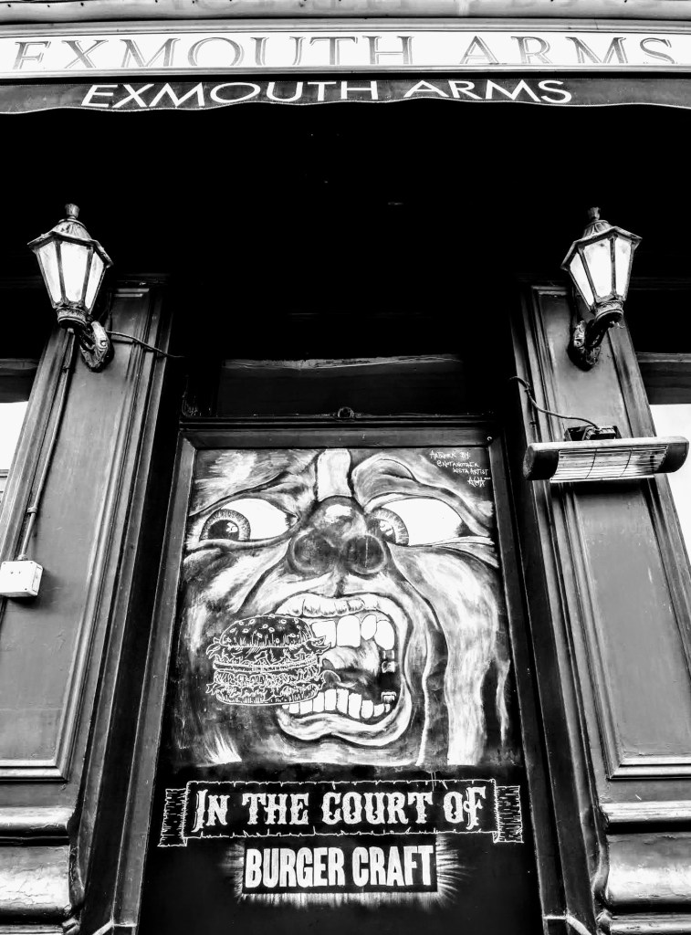 The artwork on one of its doors draws me in. It’s advertising the pub’s Burger Craft menu available for delivery. I wonder if this was a spin-off from Covid lockdown days?