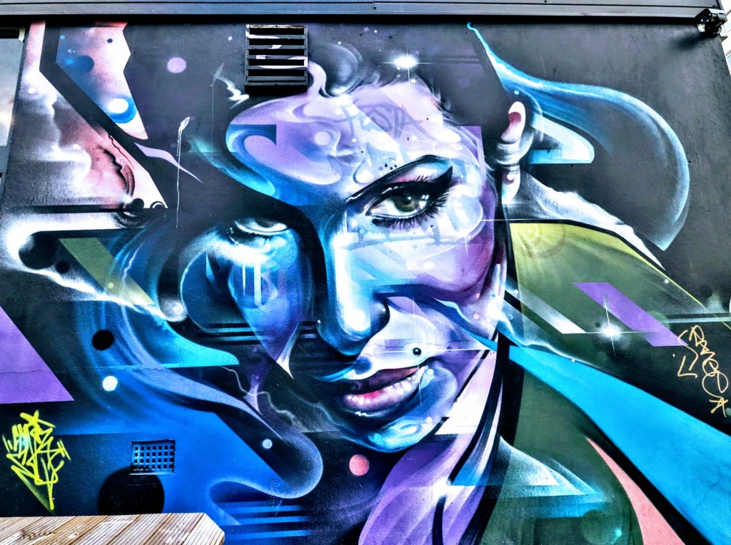 Amy – It was only whilst researching this artwork on the side of a sports bar in Lidlington Place did I realise it is an image of Amy Winehouse. It’s by the artist MR CENZ. It’s best viewed from across the street.