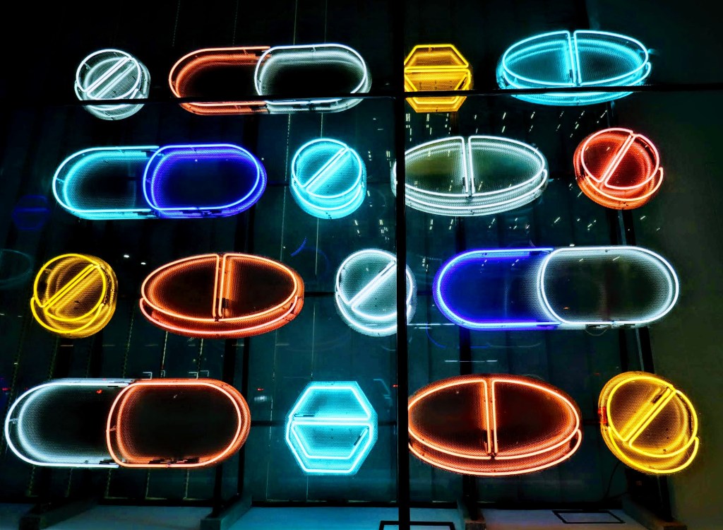 I’d often walk past the new Wellcome Collection Gibbs building as it was being built. I’d stare inside once it opened but never took my scientific brain inside to explore. I recall the window displays on Euston Road were always worth stopping to look at. Today, there are neon-lit displays on ‘Antibiotics save lives – so let’s save our antibiotics’.
