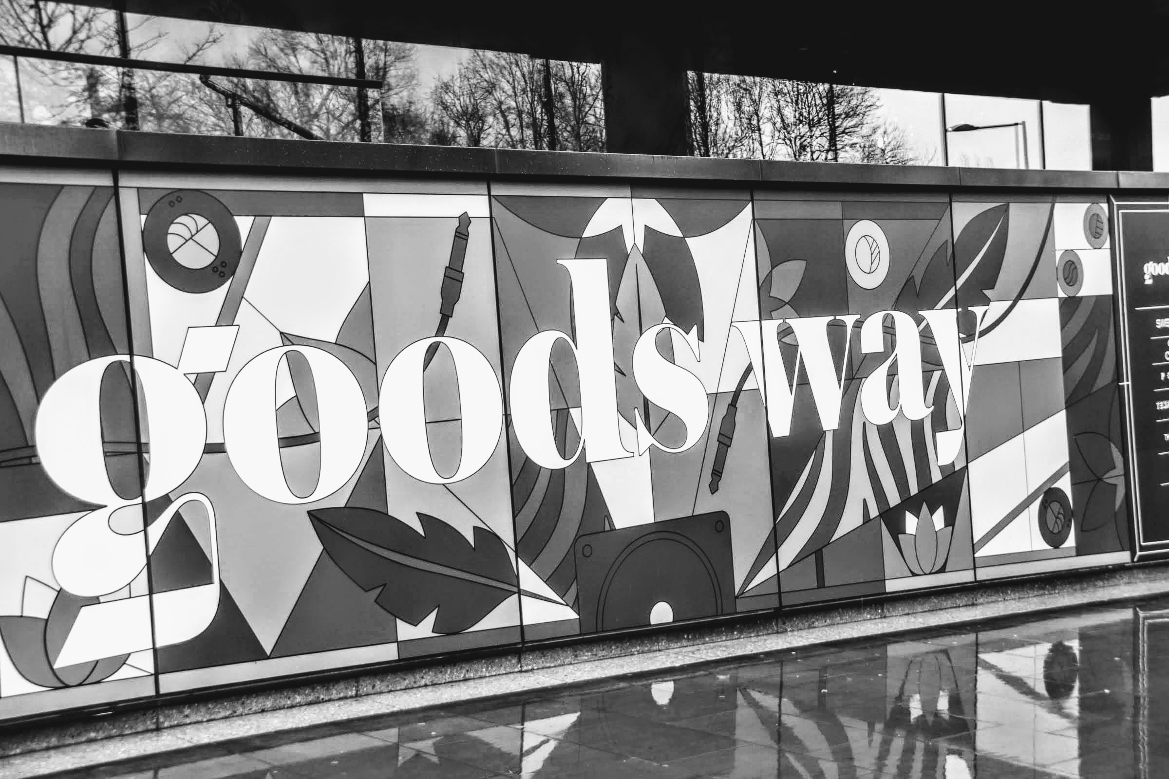 Pancras Road – head north to the station’s east. But beware of the cyclists who zoom through the extensive underpass as they traverse their way up to Goods Way. This is an appropriately named road in recognition of a large goods station that once stood here, just north of the Regents Canal, to transport coal and other goods.