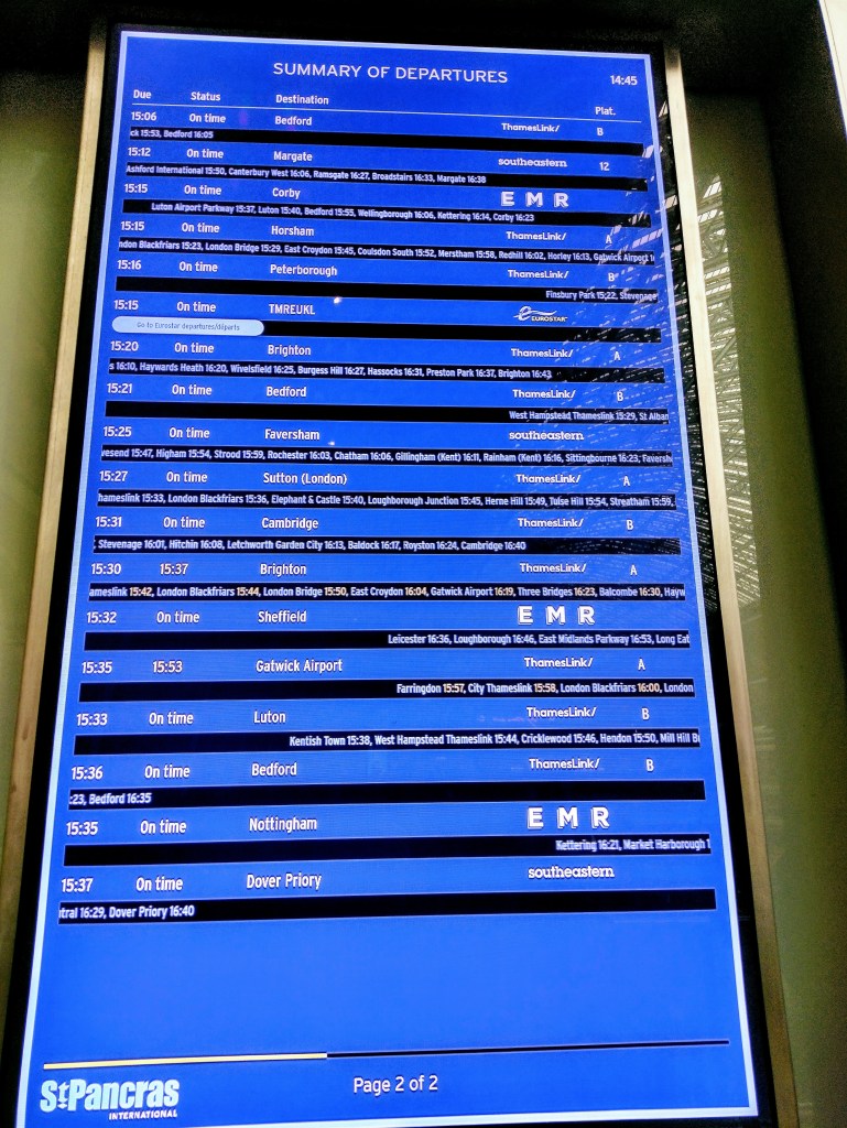 Before the modernisation of St Pancras station, Thameslink services stopped at an unconnected Kings cross Thameslink station. This has since been closed, and Thameslink trains now use the subterranean platforms A & B at St Pancras. Despite their stark concrete appearance, the platforms have a somewhat rugged/brutalist beauty which is probably missed by most of the travellers here.