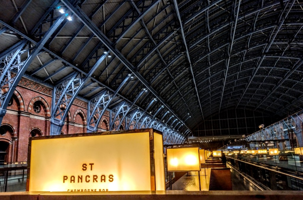 Running parallel with the Eurostar platforms on the upper level is the delightful Searcys Champagne Bar. To me, its moody lighting evokes an early 20th Century feel reminiscent of the glorious days of steam travel. Although it was closed at the time of my visit, probably due to Covid restrictions, I’m pleased to tell you it has since reopened.