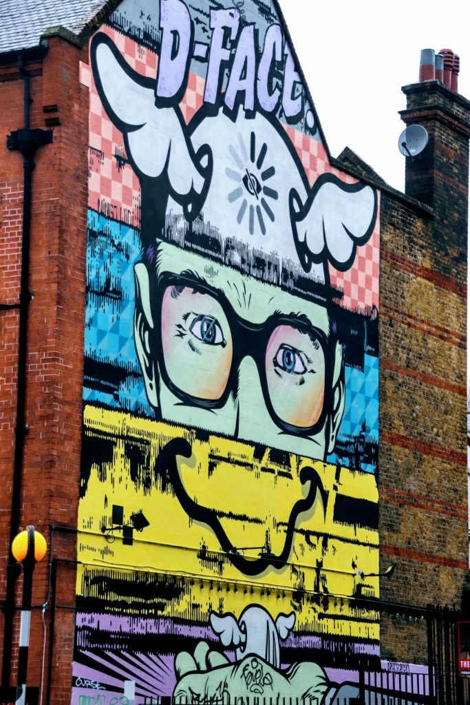 Crowndale Road: A little further up in Crowndale Road, the Old St Pancras Church House is now home to Theatro Technic, an arts organisation founded in 1957 to serve its local community. And it’s on the side of the building that street artist D*Face has created a wall-size mural entitled ‘The Face’ in 2020 as part of London’s Mural Festival.