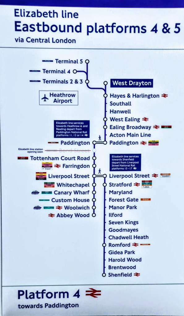Platforms 3 & 4 are the station’s workhorses where all GWR and Elizabeth Line services stop en route to Paddington, taking only 22 minutes.