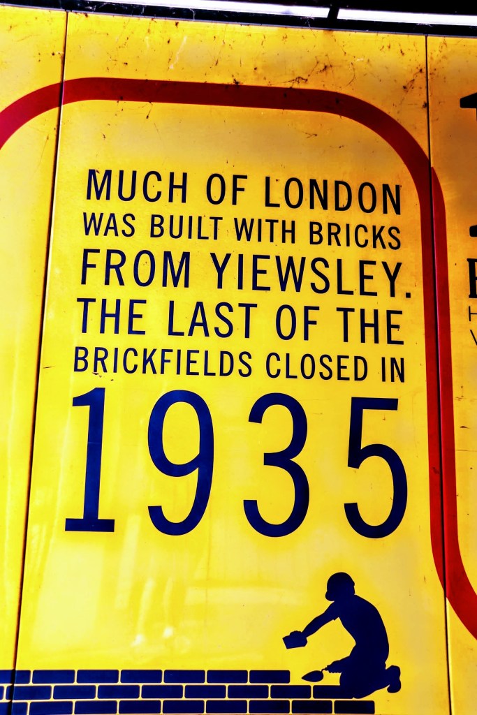 London Bricks: ‘Cowley stock bricks’ were made in Yiewsley and were used to supply the demand for building materials in Victorian London. From the sale of a mere one million bricks in 1809, the local brick industry peaked at over 100 million bricks a year by the 1890s. But, alas, there’s a limit like all natural resources, and by 1935, the last brickworks closed.