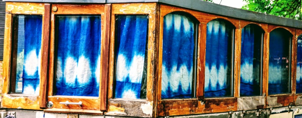 This photo is of Brightwater, licence number 512588, described as 61 feet long with a beam of 6 feet eight inches. The colours of the curtains stood out against the faded, varnished window frames, but I have no doubt this is a much-loved boat inside. If you’re interested in looking up details of other registered boats, have a look here.