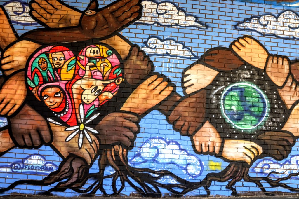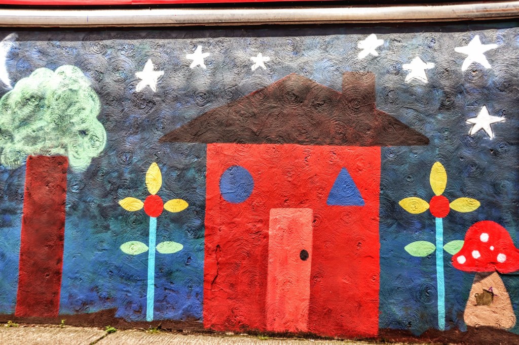In 2020, the Enchanted Children’s Festival created a Learning Trail around the High Street. The Trail was aimed, in part, at children of primary school age, promoting personal, social and emotional development (PSED), and many of the trail’s murals are still visible. Here are a few examples.