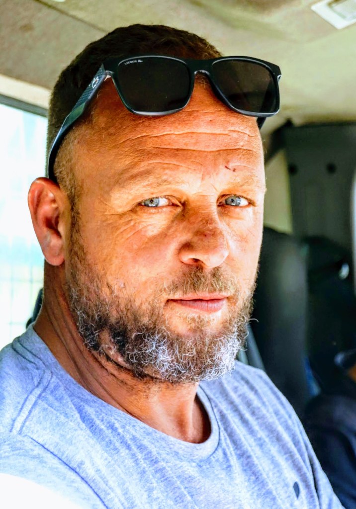 Who doesn’t love a bacon, egg and sausage roll for their lunch? I met Paul in his van outside the Filling Station Cafe In Downham Way. He and his mate were taking a lunch break from their scaffolding business P&R Scaffolding Ltd.