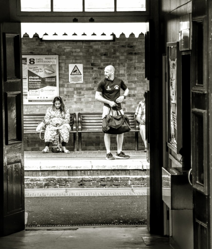 It’s not a busy station today, with trains every half hour up the line to Waterloo operated by South Western Railway. So it’s unsurprising to see people waiting, doing their own thing, whilst they wait. And although this isn’t a physical end of the line, It is as far as I can travel for free on my newly acquired Freedom Pass.