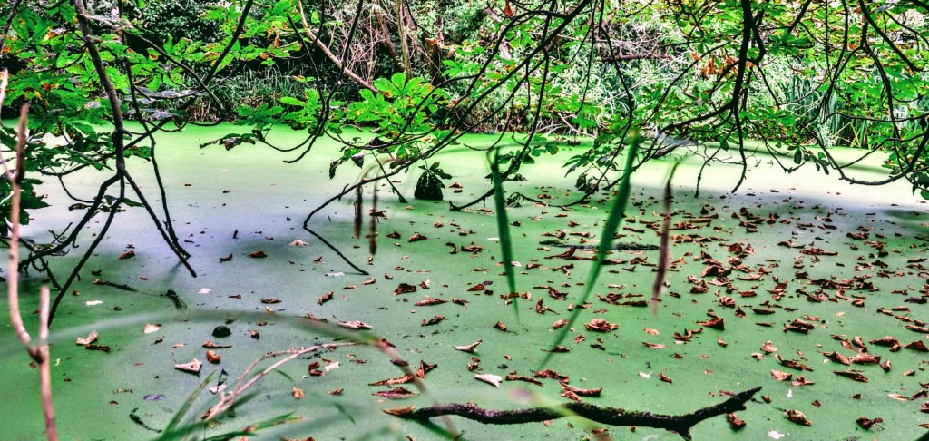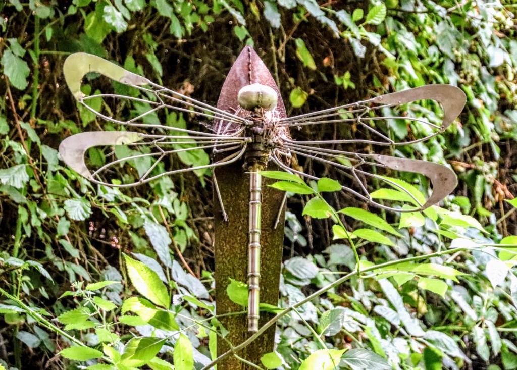 I’m nearing my day’s end, and although the path following the river continues for a while, I step into Ewell Court Park, and some dog and duck poo – yuck. Before the main pond, there’s an enclosed dingle with a distinctive dragonfly sculpture dedicated to the memory of Freda Bowles 1944-2012, ‘who loved this park’. Unfortunately, I’ve been unable to find any reference to Freda, so if you have any information to share, please drop me a line so I can update my blog.