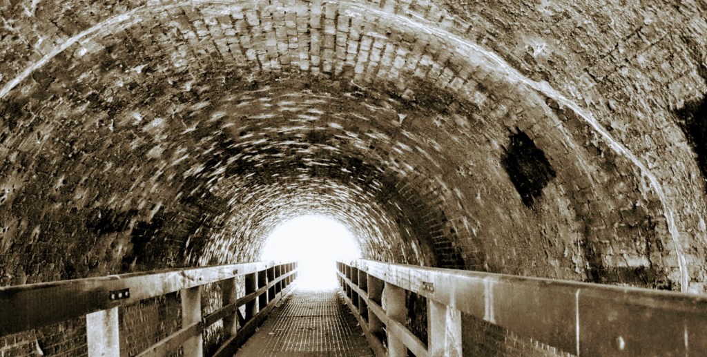 If you look on the map, you’re never too far away from residential properties, but such is the density of the woodland area; you rarely get a glimpse of them. Instead, the path meanders along the river and through a tunnel under the railway line, which has been commemorated by Epsom & Ewell Rotary as part of their centenary celebrations in 2005. As you walk through the tunnel, you’ll see the plaque…BUT beware. This is a narrow, low tunnel that cyclists ride through very fast. They do so with no regard to those on foot as if by right, they can speed along regardless.