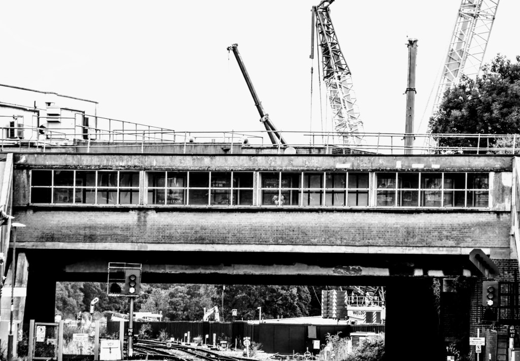 Visible from behind the station footbridge, the tunnelling’s cranes and hoarding now dominate the setting. And onto the road bridge above, you can no longer access the northern side of the footpath to peer over at the works.
