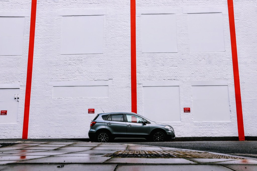 This was one of those moments that I knew once I’d seen this view, it would be my Picture of The Day. The striking red lines against the pure whitewashed wall were stunning, and the parked car’s central positioning helped provide the context.