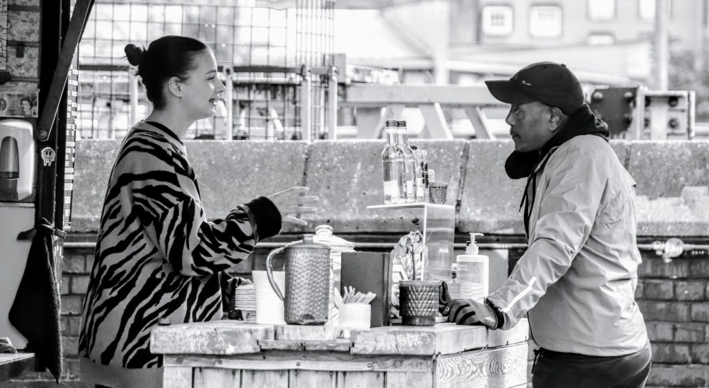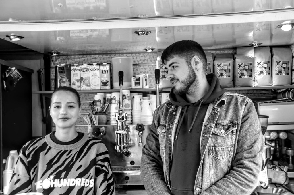 But first, fancy a coffee? As I was trying to compose the Welcome to Kentish Town shot (above) with the bicycle in the foreground, I spotted Victoria and Sam from the Bean About Town coffee stall parked on the corner. They were kind enough to pose for a few shots in-between serving their regular clients, one of whom was enjoying their company too.