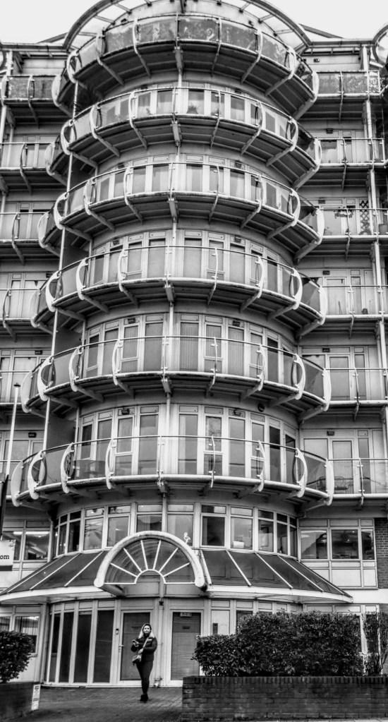The cinema has stood here since it opened in 1935. Built initially for County Cinemas, it was taken over by Odeon Cinemas during its construction and awarded a Grade II listed status in 1989. There’s a typical suburban London parade of shops across the road. You know the style; shops on the ground floor with flats above. Access to the flats is sometimes via a side stairwell or, in this case, a front entrance. Now gated, as is the demand for security, but the photo below suggests this entrance is unused, or if it is, the residents above care little for the entrance’s maintenance. I had some unusual glances from passing shoppers as I took this photo, but my thought was more about why they cared less for their surroundings.