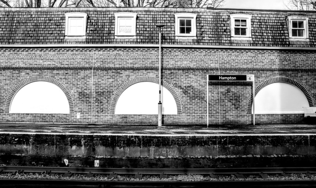 The area known as Hampton is much larger than I can cover. Served by two other stations: there’s Hampton Wick to the east and Hampton Court to the south. The name Hampton derives from the Saxon, meaning farm by the bend of a river, and captures Bushy Park to the east and the extensive Thames Water Works to the west.