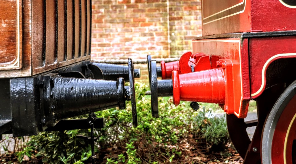 - a close-up of the buffers between the engine and carriage