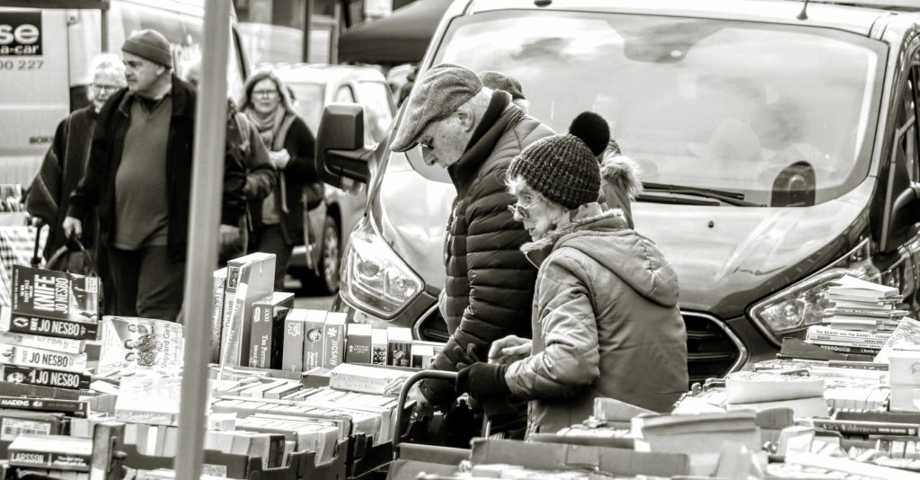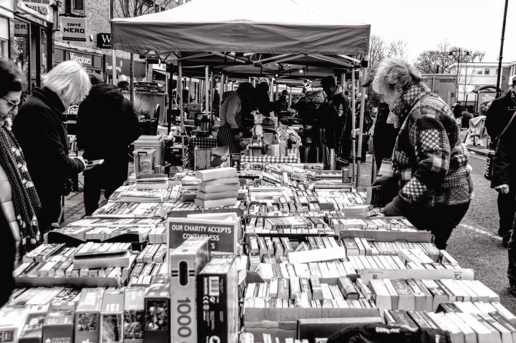 I’ve already written about the Market, and in particular, about the books stall run by the Michael Sobell Hospice Charity volunteers. So it’s no surprise my picture of the day comes from the photos I took at the bookstall. It’s taken me over 60 years to appreciate the enjoyment you get from reading a well-written book. Maybe because I’m also a published author, but I think more because of the new author friends I have made recently whose works and words I now admire.